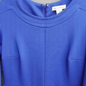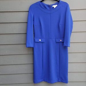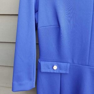 This beautiful blue classic dress is in excellent used condition. Fabric is thicker and dress is structured but with some stretch.