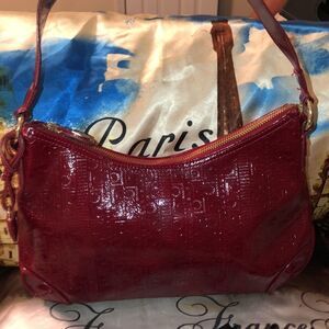 Liz Claiborne Dark Red Candy Apple Faux Leather Hobo Purse