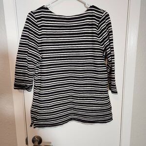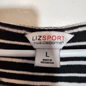 Liz Sport by Liz Claiborne horizontal striped 1/2 sleeve beach top with kangaroo pouch pocket in front. Size women's large. Some light pilling.