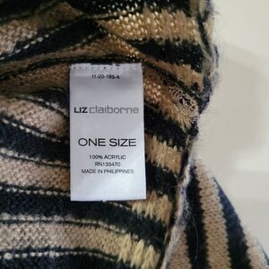 Designed with simplicity, neutral tones and a pop of color, this lightweight infinity scarf by Liz Claiborne makes a great addition to your collection. The endless circle of material that makes up this scarf features a thin striped pattern as well as large colorblocks. It's sure to enhance any outfit. This versatile infinity scarf can be worn long, doubled around the neck, or even as a hooded scarf. Excellent condition.