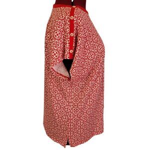 Red and white colors, geometric pattern, button detail along shoulders, short sleeves, regular fit, lightweight, breathable and super cute. NWOT