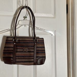 Shoulder/canvas/leather brown stripe bag excellent condition several zip compartments inside Lots of room