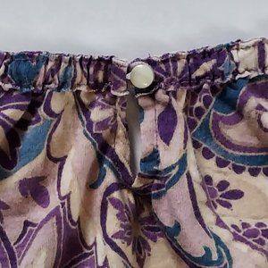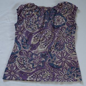 Liz&Co. cap sleeve cotton top. Size L, front pearl button closure, blue, purple, taupe, cream, lavender. Excellent condition from a non-smoking household