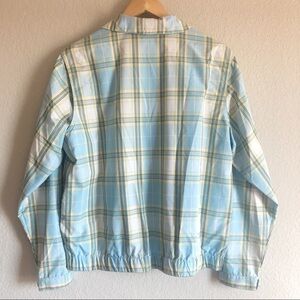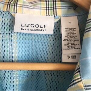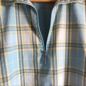 Liz Golf plaid quarter zip pull over jacket. Size M. Great pre-worn condition. Pretty spring plaid pattern in blues yellows greens and black.
