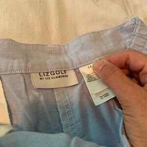Light blue Liz Golf shorts size 14. Pleated front and solid construction.