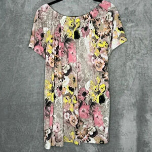 Liz McCoy 3X Shirt Top Brown Floral Short Sleeve Round Neck Stretch Casual