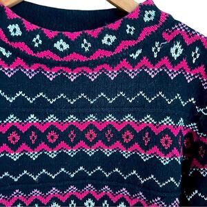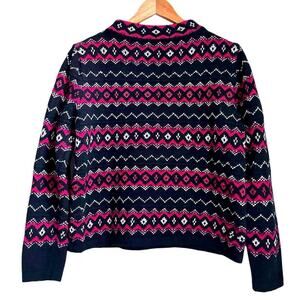 LizSport Women M Fair Isle Sweater Black Red Pink Wool Blend Retro Holiday Knit
