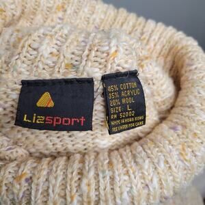 LizSport sweater women's size L beige cotton blend cowl neck classic 80's 90's