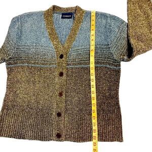 Liz Sport Blue and Grey Stripe Chenille Cardigan