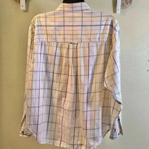 LizWear Sz M Off White Colorful Windowpane Plaid Button Shirt Top 100% Cotton