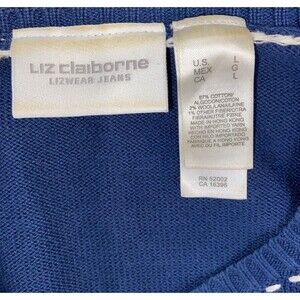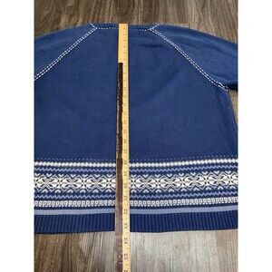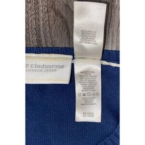 LizWear petite sweater Smoky Blue Size large Long sleeve Fair Isle pattern at sleeve cuff and waist band.