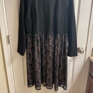 Liza Luxe Black and Pink Mixed Media Dress with Lace Bottom, Size 1X