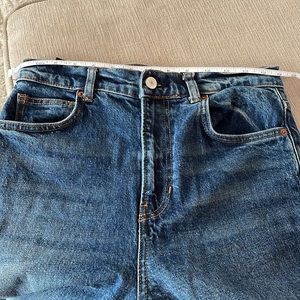 @dorianexplorian the rise from the crotch to the top of the Jean is 12”, and across the width of the pants waist is about 14 inches. I added photos :)