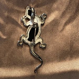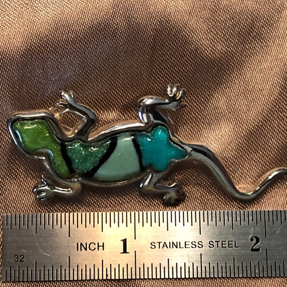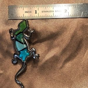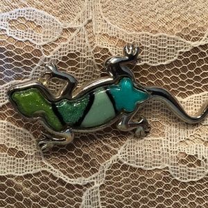 Lizard Pin/Pendant in greens and blues outlined in silver. This can be worn on a silver chain, leather cord or as a pin.