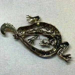 Lizard Pink and Gold Rhinestone Brooch Vintage