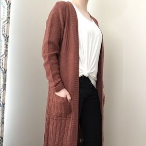 Lizard Thicket Long Cardigan-Long comfy cardigan, mauve color, pockets, cuffed sleeve. (Never been worn.)