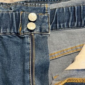 Lizard Thicket large denim paper bag skirt new stretchy waist zip button closure