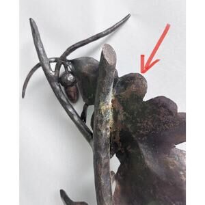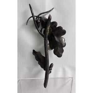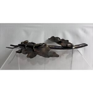Lizard on Oak Branch Acorns Cast Iron Bronze Metal Sculpture Art Nouveau 14”
