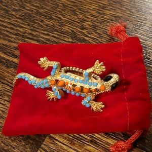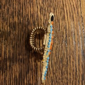 Such a fun ring. Stretchy band is one size fits all. Gold, blue and coral with black eyes. NWOT. Red gift bag included.