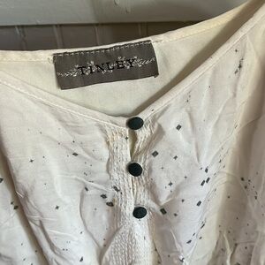 White romper. No tag but I would say it’s a medium/large. Small stain near chest that’s pictured.