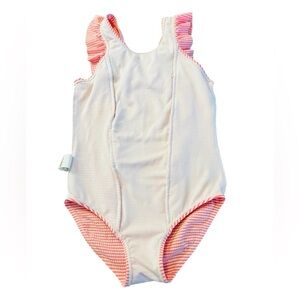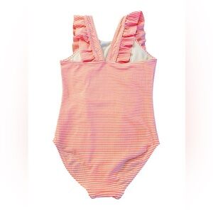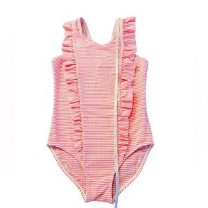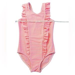 Lizens Girls Pink Ruffled One Piece Swimsuit with Stripes Size 6-7