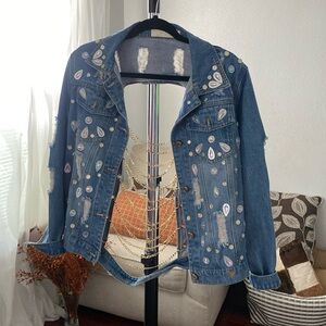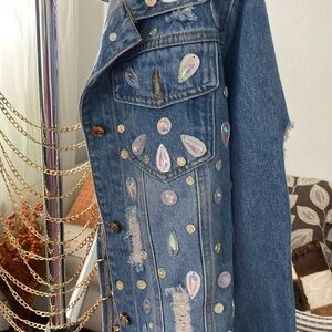 Lizette Collection Art Deco Backless Chain Denim Jacket Size S ( E - 15 )