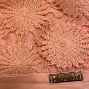 A salmon pink top from the Lizette Collection with flower embroidery and a cute back design! 🌸