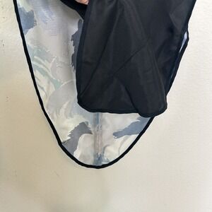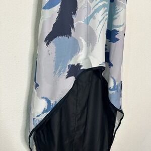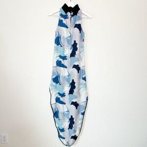 Lizna Dramatic High Low Blue and Black Graphic Silk Blouse XS