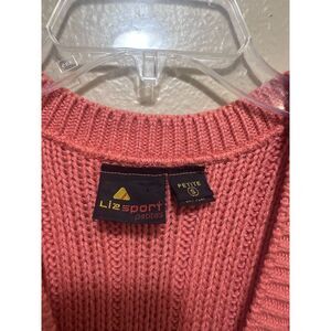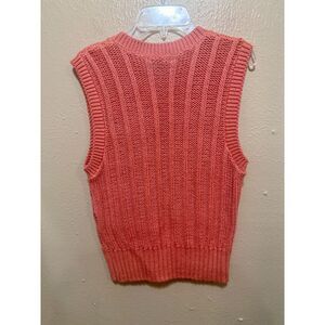 Keywords: sweater vest, cable knit, sleeveless top, coral, lizsport petites, petite size, small, s, knit vest, preppy, retro, vintage, casual, layering piece
