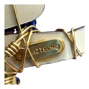 This unique Liztech brooch is a stunning example of artistic craftsmanship. Its intricate wire-wrap design features vibrant blue stones and a heart, encapsulating elegance. Wear this piece to express individuality and style, or gift it to someone who appreciates unique jewelry with character and charm.
