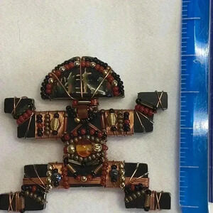 Liztech 2003 Tolima / Panche Brooch Black and Copper Wire Aztec Warrior