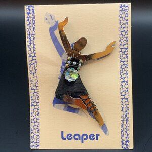 Liztech Signed LEAPER Joyful Happiness Dance Circa 1994 Brooch Artist Made J410