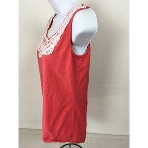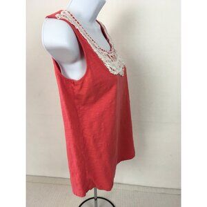 Lizwear Womens Top Size S Coral with White Lace Trim at Neckline Sleeveless