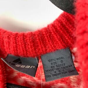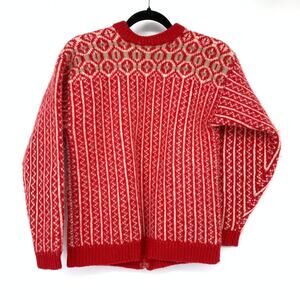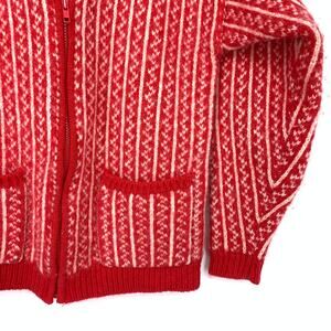Lizwear Wool Cardigan Womens Small Red Nordic Knit Zip Front Vintage Sweater