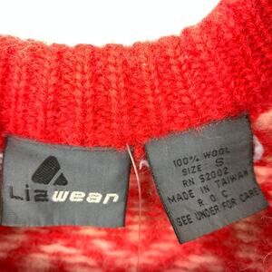 Lizwear Wool Cardigan Women’s Small Red Nordic Knit Zip Front Vintage Sweater