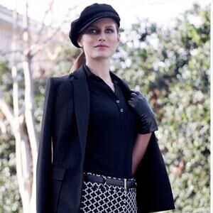 Lizzie Driver Polo Golf Shirt Sz M Black Short Sleeves Button Luxury Top Sporty