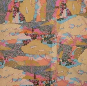 Colors are shades of brown, tan, pink, orange, blue.