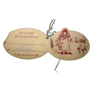 Lizzie High 1996 Wooden Folk Doll Maisie Bowman Accessories Tag Handcrafted Vtg