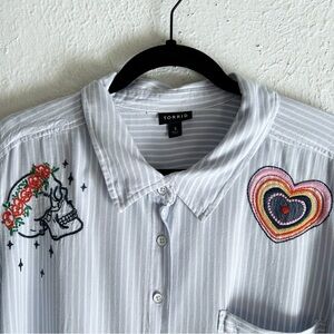 Lizzie Rayon Twill Striped Embroidered Button Up Long Sleeve Shirt Sz 3