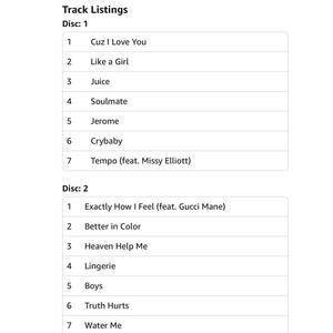 Deluxe vinyl LP pressing. 2019 release. Cuz I Love You is the third studio album and major label debut by rapper and singer Lizzo. The album is Lizzo's first release since her 2016 Coconut Oil EP. Lizzo stated at the album preview party at the Crazy Girls strip club in Hollywood on January 30 that she has been working on the album for three years. She also previewed a collaboration with Missy Elliott titled "Tempo". Along with the lead single "Juice", the album includes the empowering dance track "Like a Girl" and a song dedicated to an ex titled "Jerome".