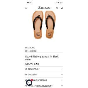 Lizzy Billabong Women’s sandal in Black color 7.5