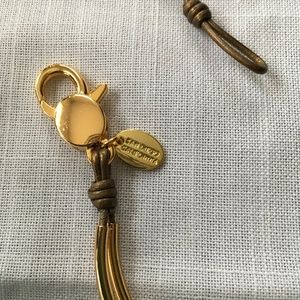 Semi-precious Turquoise beads strung on 2 leather strands with gold plated crescents and clasps. X-Large size on website fits 7 1/8" to 7 3/8" wrist. Excellent condition. Comes with Lizzy James box.