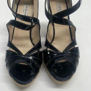 Lk Bennet Maggie Sandal Wedge Espadrilles Patent Leather Heels Black 39.5 US 9