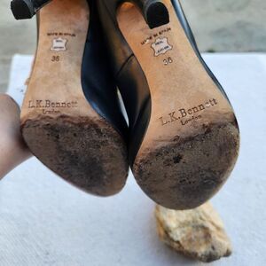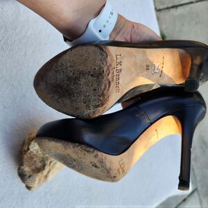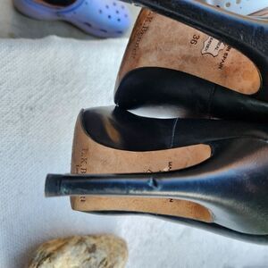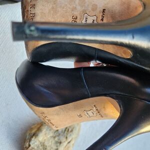 Black round toe leather slight platform pumps. great for retro styling office carrier wear. Preloved condition. All sections of interest as well any known flaws have been documented in the photos and noted as thoroughly as possible. if there are no known flaws, none will be noted. Please feel free to ask any questions before purchase 🙂.