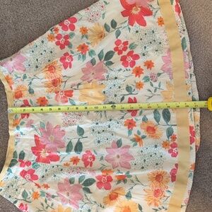 Embrace a vibrant look with this floral A-line skirt. Featuring a beautiful mix of red, pink, yellow, and green hues, it's perfect for any occasion. Pair it with your favorite top for a chic ensemble.