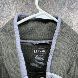 Ll Bean Sweater Women 2X Green Pullover 1/4 Zip Polyester Regular T Snap Jacket