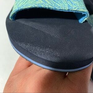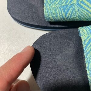 Ll Bean Womens Maine Isle Slide Sandals size 8M Blue Leaf Print Yellow. A light scuff and indents from being stored. Like new otherwise:) smoke free home. Ships fast!