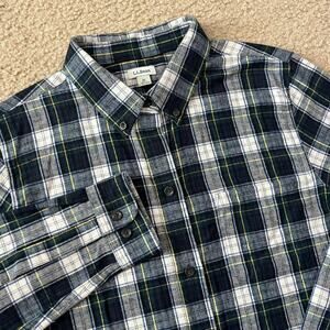 Ll Bean Womens Scotch Plaid Flannel Shirt Blue Green Size Medium