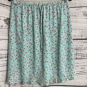 Ll Bean skirt womens Size Small Petite floral ruffle hem drawstring rayon spring