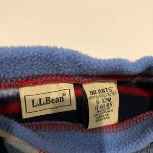 Cozy Multi-Stripe Fleece Sweater. This warm and comfortable fleece sweater features a vibrant horizontal stripe pattern in shades of blue (light and dark), red, and white. It has a classic crew neck with red stitching detail and long sleeves, making it perfect for keeping warm on cooler days.